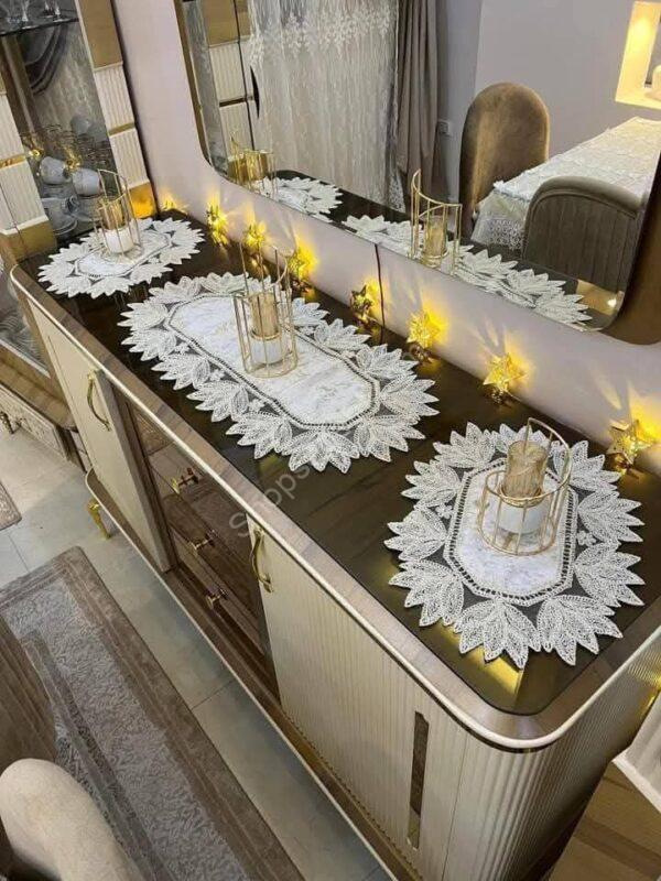 - سهولة في العناية: المفرش سهل الغسل ويحافظ على شكله حتى بعد فترات طويلة من الاستخدام.